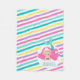 El diseño presenta una linda princesa de sirena rosa sobre un fondo verde azulado de rayas diagonales color rosa rosa amarillo pálido. Personalizar con tu nombre.