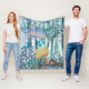 Disfruta de esta caprichosa e ingenua manta de fondo de arte azul Forest con forraje con flores azules bajo árboles altos, mariposas volando alrededor de unas hojas más grandes flotando en el aire y una linda niña con unas cuantas mujeres bugs completan este escenario artístico de un bosque mágico. Será genial mejorar tu habitación de niñita con mágica escena del bosque. Gran regalo para cumpleaños u otra ocasión.