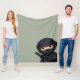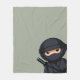 Adorable ninja pequeño regordete pero de aspecto feroz está vestido con traje negro y lleva katana - espada tradicional japonesa.