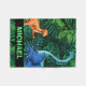 Este diseño de dinosaurios es genial para el amante de los dinosaurios en tu vida. La manta de la hoja de jungla con temática de dino cuenta con un trex, triceratops, brontosaurus y raptor, y se puede personalizar con el nombre del niño o chica.