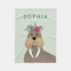 Esta bonita manta de Navidades infantiles incluye una morsa y un ilustracion de copos de nieve sobre un fondo verde, con una corona floral. Este encantador y elegante diseño también ofrece un lugar para añadir el nombre de su chica. ¡El diseño perfecto de la manta de vacaciones para los amantes de los animales de invierno!
