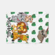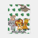 Estos lindos animales (pereza, mono, elefante, león y jirafa) están sentados y esperando jugar. Detrás de ellos hay un fondo blanco con un patrón de hojas de jungla. Debajo de ellos está el nombre de su hijo, que está jugando con ellos en la selva tropical. Añade algunos amigos lindos a la hora de napar de tu hijo.