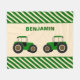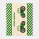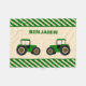 Características del este diseño dos tractores de granja lindos con la frontera verde y beige de las rayas. Modifiqúela para requisitos particulares con su nombre.