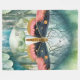 Una delicada polilla rosa y marrón sobre el fondo de un misterioso bosque azul y verde.