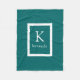 Monograma o nombre de encargo personalizado en blanco con un fondo verde azulado oscuro del color verde para las mantas acogedoras del paño grueso y suave - eligió su tamaño de la manta. Personalice su regalo añadiendo su propio nombre, childs nombre, apellido, monograma o iniciales. Este diseño o modelo elegante elegante lindo moderno aumentará cualquier sitio casero del dormitorio de la decoración, de la sala de estar, del sofá, del salón, del dormitorio, de la oficina, del barco o de la universidad o de la universidad, adolescentes, cuarto de niños, chicas, muchachos, o embroma cuartos. Esta manta es un regalo perfecto para la universidad, navidad, boda, cumpleaños, compromiso, o para alguien usted ama. Elija su propia fuente y colores para hacerle sus los propios.