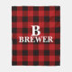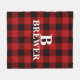 Este diseño presenta un patrón de tartán rojo y negro junto con un monograma en el centro de la manta. Puede personalizar este elemento con el apellido inicial y familiar utilizando la plantilla personalizado.