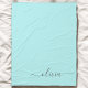 Manta de felpa con nombre de monograma de letra simple en azul turquesa aqua e inicial. Esto hace que el regalo perfecto para cumpleaños de dulces 16, boda, despedida de soltera, aniversario, baby shower o fiesta de soltera para alguien que ama el lujo glamoroso y los estilos chic.
