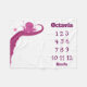 Una manta hito para mostrar los meses de progreso de su bebé. El diseño es rosa y púrpura magenta y muestra un pequeño pulpo sostenido por un pulpo grande. El nombre del bebé se puede personalizar.