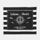 ¡Bienvenidos a bordo! Funda náutica de lana de barca que lee tu nombre de bote personalizado rodeada por una brújula con un ancla sobre rayas blancas y negras modernas con gaviotas así como una segunda línea de texto lista para ser personalizada.