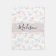 Una manta personalizada de lana blanca con un patrón de fondo de mariposa de bonito. El patrón tiene siluetas de mariposas en rosa pastel, azul, púrpura y amarillo. El overlay púrpura pastel se puede personalizar añadiendo tu propio nombre para crear un regalo realmente único. Esta manta de mariposa sería un delicioso cumpleaños de personalizado o un regalo para la ducha de bebé, o sólo una elegante adición a un dormitorio con temática de mariposa.