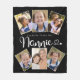 ¡Esta niña ama a su Nannie! Cuidada y moderna manta de collage de fotos de la familia de personalizados para mostrar a la abuela lo mucho que le encanta. Nos encanta este diseño de escritura con letras a mano con un corazón floreciente, lo que hace de esto un sincero regalo de sake para un querido abuelo. Personaliza con 6 fotos favoritas y tu mensaje y nombre personales. Disponible en muchos otros nombres que podría llamar a su abuela (Mimi, Nana, Meemaw, Oma - y muchos más, por favor busque el en nuestra colección de abajo). Esta es la versión de fondo negro.