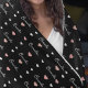 Un diseño de patrón romántico de corazones blancos y rosados con nombre personalizado, alineados uno al lado del otro y orientados diagonalmente, estampados por toda la superficie negra.