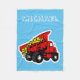 Un diseño fresco, lindo y de la diversión de un camión rojo brillante arregló con el blanco fijado contra un fondo azul en colores pastel que tiene su nombre de los hijos, de los sobrinos o de los nietos en él.