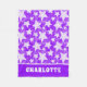 Modern Girly Purple Star Pattern Nombre personalizado Fleece Blanket presenta un divertido y bonito patrón estrella en color morado y blanco con su nombre personalizado a continuación. Personalice editando el texto en el cuadro de texto proporcionado. Diseñado por ©Evco Studio www.zazzle.com/store/evcostudio