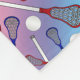 Patrón de lacrosse deportivo moderno y de moda con palos lacrosse rojos y azules y una bola de caucho blanco con fondo de arcoiris y con rayas negras de arcoiris personalizadas con solo añadir tu nombre regalos o regalos monogramas o tus iniciales para un regalo único. Ideas deportivas para hombres y niños y chicas.