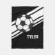 Un diseño deportivo con un balón de fútbol contra las rayas diagonales blancas y el fondo negro.  Personalice esta manta acogedora del paño grueso y suave con un nombre o ponga en cortocircuito la frase. La fuente colegial del estilo le da una sensación de los deportes atléticos.  Esta manta es grande para los aficionados al fútbol, los jugadores y los coches.  Acogedor para arriba en el sofá o en el estadio con esta manta mientras que usted mira el juego.  También hacen un gran presente para el navidad, el cumpleaños y otros días de fiesta.  Este diseño disponible en una variedad de colores.  Si usted no encuentra lo que usted está buscando apenas el mensaje yo con su petición.