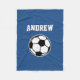 Nombre personalizado de la manta de la pelota de fútbol. Fondo de color azul o Personalizado con logotipo y nombre, apellido, nombre de equipo o cita graciosa. Idea de regalo deportivo de Guay para jugador, entrenador, hincha. Haz uno para papá, mamá, hijo, nieta, hija, nieta, etc. Adecuado para hombres mujeres y niños (niños o chicas). Accesorios de habitación deportiva para niños.