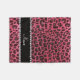 Moderno, elegante, moda y de moda nombre personalizado personalizado fuchsia purpurina rosa patrón de manchas leopardo (huella animal) con una franja de diamantes negros (diamantes no reales) con bellos corazones y puntos personalizados con sus nombres regalos o regalos en monograma o sus iniciales. Bonito de las ideas de regalo de leopardo.