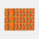 Ideas de regalo de hamburguesa y patatas fritas. Hamburguesa con queso, lechuga, tomates y patatas fritas amarillas en una cesta roja con un patrón de puntos blancos con fondo naranja, banda negra naranja personalizada con sus regalos de nombre o monograma o sus iniciales. Los mejores regalos para chefs, cocineros y hamburguesas.