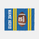 Los colores básicos del equipo de oro azul y amarillo para apoyar y alentar al equipo de fútbol masculino! Gran regalo personalizado para el chico deportivo dentro o fuera del campo. Apoya a su liga toda estrella con este maravilloso nombre personalizado y número de manta de fútbol americano con bola de pigmeo marrón y nombre blanco y número de texto varsity para el jugador de equipo MVP!