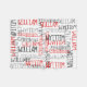 Fondo blanco con vibrante combinación en blanco y negro y rojo, combinación clásica de tonos blancos y negros para niños mayores o estética moderna. Patrón de nombres de repetición de Guay. Pon el nombre del niño de los niños por toda esta colorida creación de tipografía creativa. Variedad de fuentes con nombre o palabra elegida repetidas por todas partes. Celebra cualquier ocasión con una manta personalizada de regalo de collage de nombres, perfecta para un cumpleaños infantil, una idea de regalo de Navidades Personalizados o para celebrar un recién nacido!