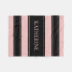Un diseño sencillo y elegante con rayas negras y rosas claras y un nombre personalizado.