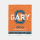 Nombre simple que significa letras texto con estilo deportivo manta para el nombre Gary que significa Spear, Una fuerza de coraje y coraje firme. Existen otros estilos de significados de nombres disponibles o personalizan esta manta con su propio nombre y lo que su nombre significa para usted y su cántico o equipo o nombre repetido. Ideal para aficionados o jugadores que tengan naranja, azul y blanco como colores de equipo. Diseñado por www.mylittleeden.com y namesense en Zazzle.