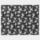 Un revoltijo de balones de fútbol grises y notas de música blanca contra un fondo negro es un diseño musical único para músicos, profesores de música y estudiantes.