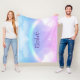 Una manta con una imagen de fondo suave y encantadora. Tonos azules y nubes rosas con un arcoiris mágico.