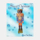Un petardo alemán tradicional que representa a un militar con uniforme azul y naranja. El petardo es superpuesto en una imagen de fondo azul con copos de nieve. También aparece un texto que dice "Feliz Navidad". Añade tu propio texto adicional.