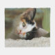 Pequeño gatito que mira de detrás una pared con los ojos que alzapriman, retrato del primer. Tomé la imagen de este gatito lindo del calicó en Chipre. Esta manta acogedora suave del paño grueso y suave es una idea encantadora del regalo para los amantes del gato. Fotografiado por Katho Menden. http://www.zazzle.com/kathom_photo