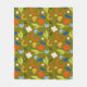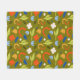 Un alegre patrón floral con flores audaces y abstractas y hojas en tonos cálidos sobre un fondo verde oliva. Perfecto para añadir un toque de encanto y color retro a cualquier espacio.