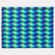 Una manta de lana de gran tamaño con un diseño colorido y sombrío de chevrones en verde lima, azul turquesa real, azul océano y azul cielo.