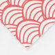 Esta manta de lana media tiene un diseño Art Déco de líneas curvas de salmón en forma de triángulo sobre un campo blanco repetido a lo largo del diseño.