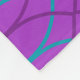 Esta manta de lana media tiene un diseño boho de olas violetas y turquesas sobre un campo de púrpura claro.