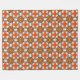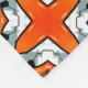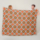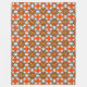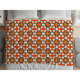 Image showing vibrant towels and a washcloth with intricate orange, blue, and white geometric patterns. Towel set hangs neatly; washcloth is flat with a corner flipped.