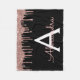 Oro Rosa - Manta de Peluche con Monograma y Letra Inicial con Brillo Rosa y Negro. Esto hace el regalo perfecto para cumpleaños de 16, boda, despedida de soltera, aniversario, baby shower o fiesta de soltera para alguien que ama el lujo y los estilos elegantes.