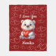 El bonito diseño presenta un lindo oso blanco sosteniendo el corazón rojo con el texto "I Love You" sobre el fondo rojo. Puedes personalizar fácilmente esta manta con el nombre de tu querida. Esta manta elegante será perfecta como regalo personalizado para tu amante.
