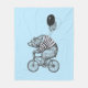 Este diseño presenta a un oso con una camisa a rayas que entrega globos en su bicicleta.