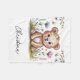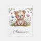 Una encantadora tarjeta de ducha para bebés con una acuarela de ilustracion de un lindo oso marrón bebé con pieles juguetonas y delicados acentos florales dispersos por todo el cuerpo. El oso se asienta en medio de un campo de flores silvestres de colores pastel -lavanda, azul bebé y amarillo suave- que crean una escena suave y caprichosa, con unas cuantas mariposas dispersas que agregan un toque de magia. El texto "We Can Bearly Wait" (Podemos esperar temprano) aparece en una tipografía dulce con letras a mano debajo del oso, complementando la estética de las acuarelas, y el interior de la tarjeta ofrece un amplio espacio para un mensaje sincero con un sutil borde de pequeñas estriberas florales. El conjunto es acogedor, alegre y acogedor, perfecto para celebrar la llegada de un recién nacido. ¡Genial para un Chica o un chico Baby Shower!