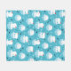 Una manta con un lindo patrón de Navidades con osos polares parados sobre hielo flotante usando sombreros rojos de santa. Pequeños iglús, copos de nieve y peces rodean a estos adorables osos polares escalofriantes en el agua. Fondo azul claro. Un diseño vacacional agradable y caprichoso.
