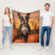 Admire el encanto rústico de otoño con nuestra impresionante manta mostrando un Boston Terrier en un campo de cosecha mientras el sol se pone en el fondo.