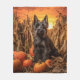 Disfrute de lo último en confort y compañía con nuestra cálida y acogedora manta. Con un adorable Terrier Escocés en medio de un campo de calabazas al atardecer, es la invitación perfecta para entrar en contacto con tu amigo y crear recuerdos preciosos juntos.