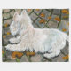 Otoño estacional Autumn West Highland White Terrier sobre un patio de piedra con hojas caídas. Perro occidental asomando un arbusto florido. Isobel. Derechos reservados © 2025 Angi Laframboise. Todos Los Derechos Reservados. Regalos de raza de perros de arte fino para los amantes del perro.