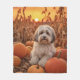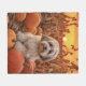 Admire el encanto rústico de otoño con nuestra impresionante manta mostrando a un adorable perro habanés en un campo de cosecha mientras el sol se pone en el fondo.