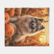 Aproveche el encanto rústico de otoño con nuestra impresionante manta mostrando un Keeshond en un campo de cosecha mientras el sol se pone de fondo.
