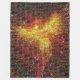 Una manta con un fénix realizado en un diseño de mosaico que incluye las 26 criaturas mitológicas del libro de imágenes para niños P es para Phoenix.