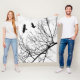 Este paisaje de inspiración gótica cuenta con una silueta negra sobre blanco de 2 cuervos voladores y ramas de árboles de estrellas en las que se sientan 3 pequeños pájaros cantantes.