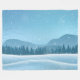 Paisaje nevado de invierno con montañas, colinas y pinares, ilustracion.