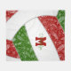 Esta manta de pulpa con tema de voleibol boho para su sala de voleibol presenta la imagen realista de un voleibol de tamaño abstracto que tiene paneles rojos, verdes y blancos - un continuo patrón de doodle de paisajes, flores y plumas en blanco cubre los paneles rojos y verdes del voleibol - personalizable con el nombre y el monograma de la atleta, carta de varsity o número jersey - por katz_d_d_zynball 4.º espiga
